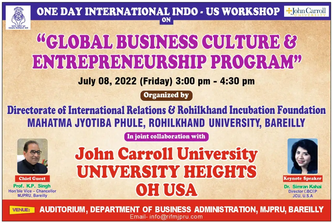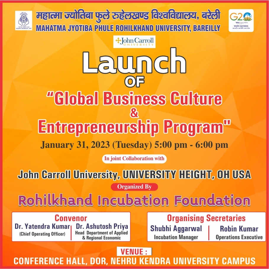 मुझे यह जानकर अत्यन्त प्रसन्नता की अनुभूति हो रही है कि महात्मा ज्योतिबा फुले रूहेलखण्ड विश्वविद्यालय, बरेली द्वारा रूहेलखण्ड इनक्यूबेशन फाउण्डेशन की स्थापना की गई है।
