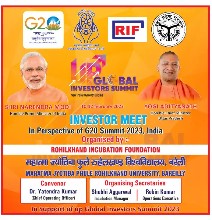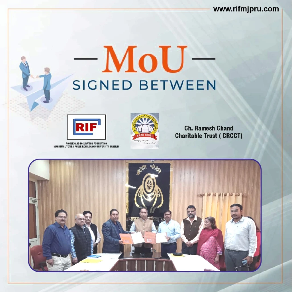 Rohilkhand Incubation Foundation (RIF) is a Section 8 Company promoted by Mahatma Jyotiba Phule, Rohilkhand University, Bareilly. RIF is a Not-for- Profit Centre dedicated to nurture Innovation, Incubation and Entrepreneurship with its Board of Directors and Chairman. It is a nationally connected framework for Angel Investors, Start-Ups, Entrepreneurs, Incubates, Innovators, Creative Minds, Investors, Corporate Partners, Academic Association, Professional Resources, Mentors, Experts, Consultants, Advisors and Faculties from inside and outside University for the incubate companies, equipped with CA/CS, Accountants, Lawyers Facility, Idea/Technology Display, Banking Support, Venture Capitalists, other Investors and Seed Funds to provide necessary support to help incubates, entrepreneurs and innovators survive in the competitive market and reach a stage where they can scale-up their ventures further.